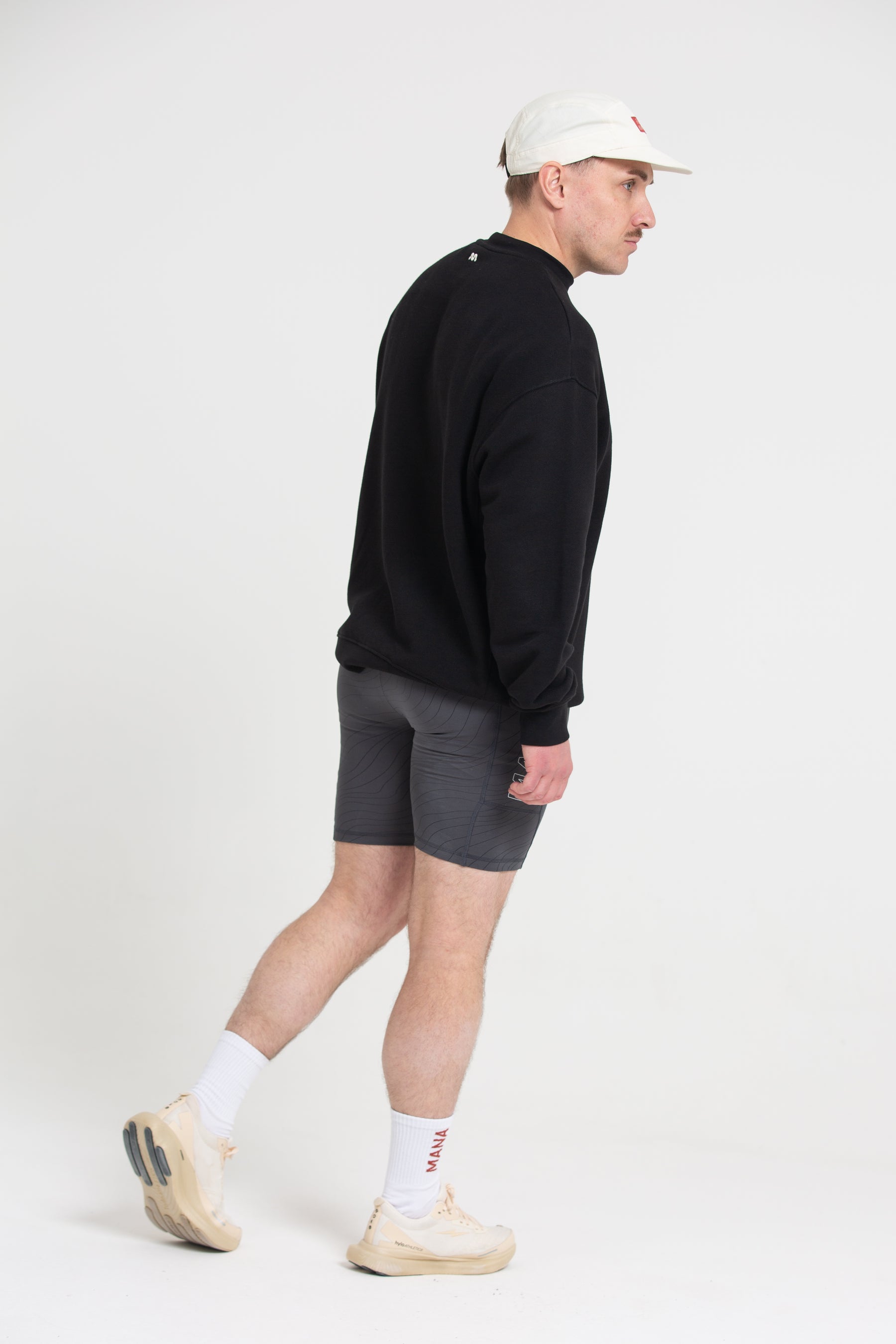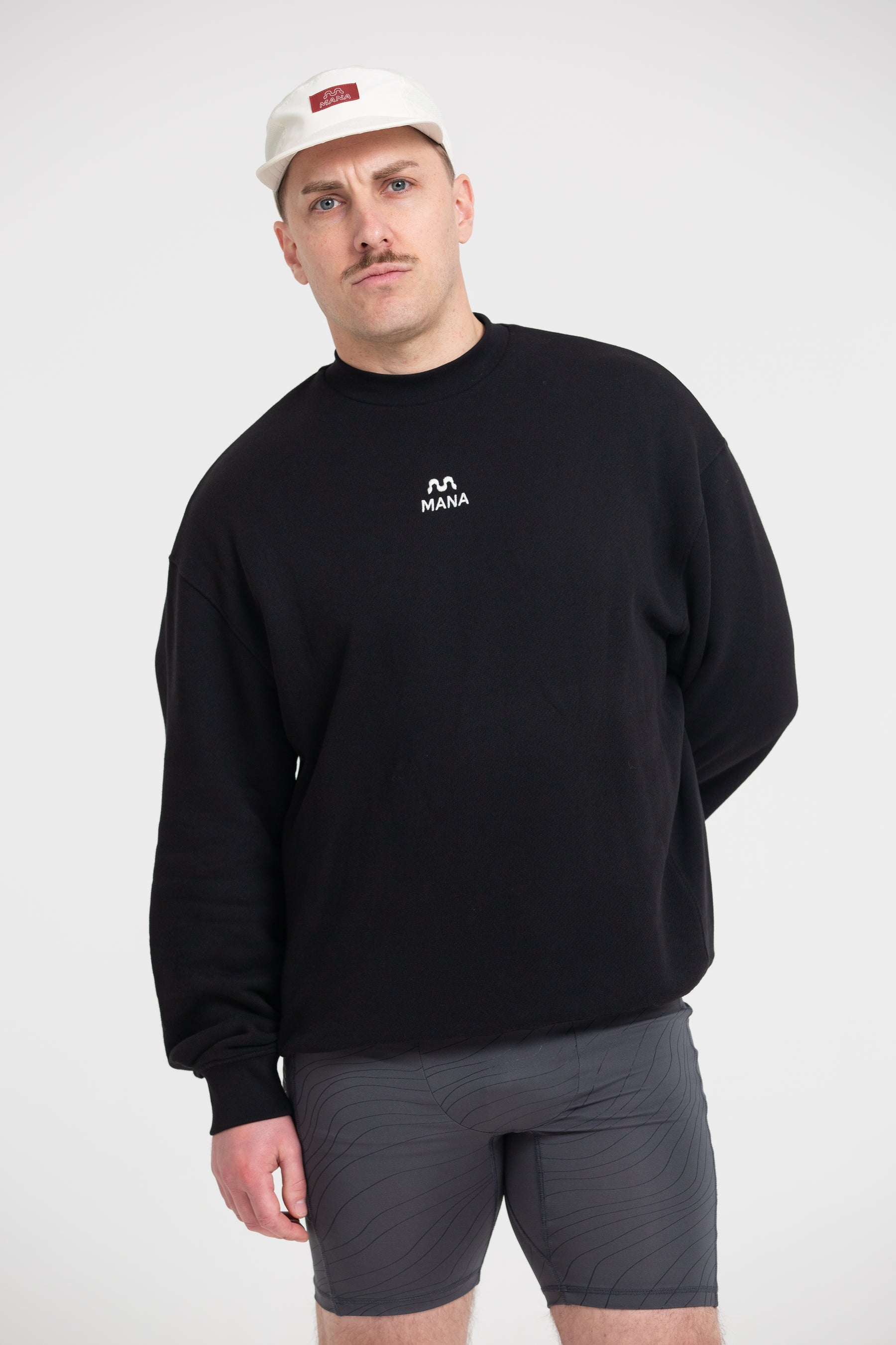 Men's lifestyle crew neck with MANA embroidered logo to front chest and embroidered logo branding on back neck in soft 100% cotton loopback quality. Rib neckline, cuffs, waistband and inserts at side body for maximum movement.